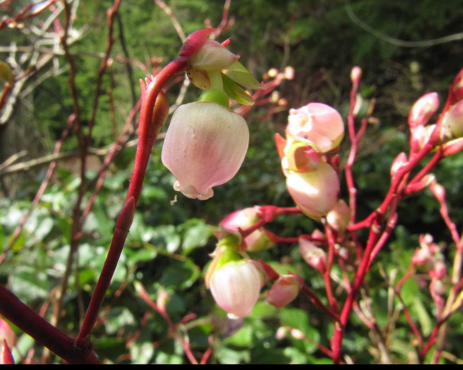 | March 25th saw the first of the blueberry bushes flower and these might have been what the hummingbird was sipping from. Imagine the sweetness of blueberry nectar. no wonder the baby looks so content |